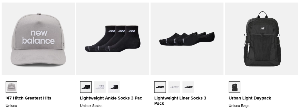 In addition to footwear, New Balance also offers a range of activewear essentials: