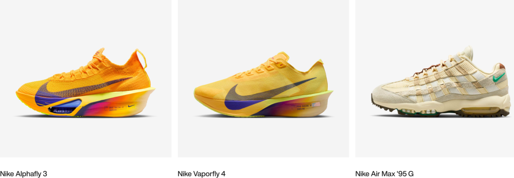 - Running shoes (Nike Air Zoom, Pegasus, React)