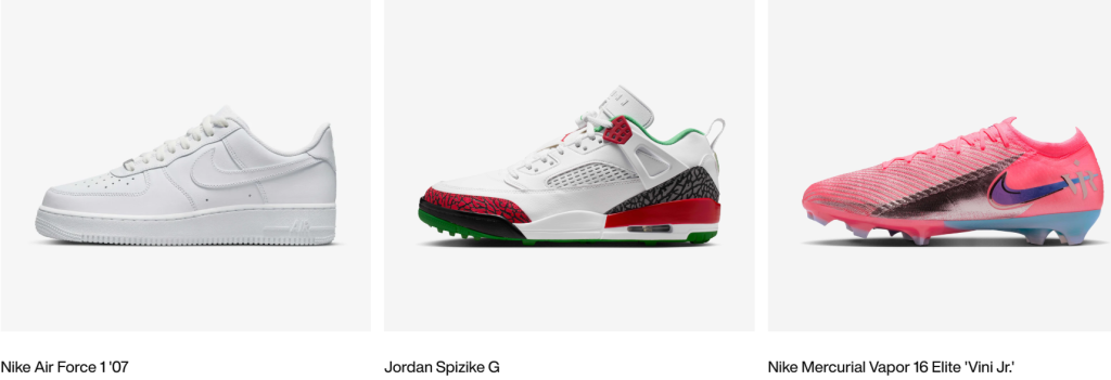 - Lifestyle sneakers (Air Force 1, Cortez, Blazer)