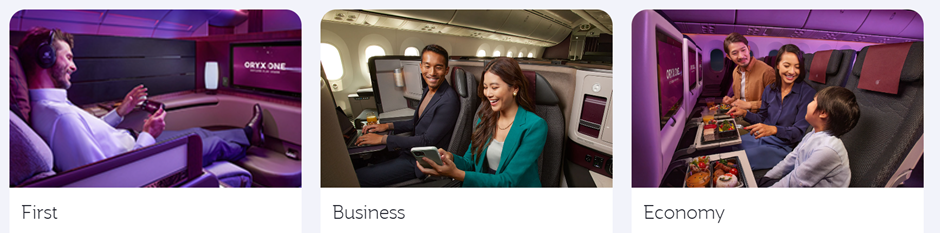 | Business Class | Award-winning (Qsuite) | Premium | Luxury |