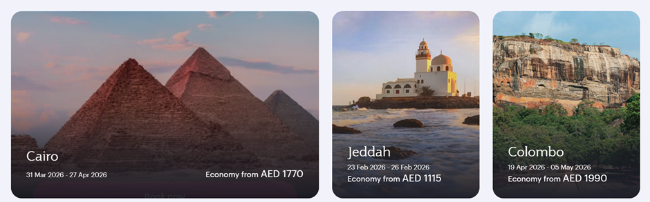 Return fares often range between AED 1,800–2,700, depending on season. Summer promotions can offer particularly strong value.